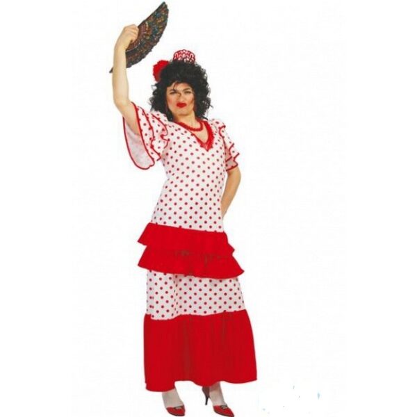 El disfraz de andaluza para hombre incluye el traje. Con este disfraz serás la más flamenca en tus fiestas de disfraces. Ideal para carnaval o para ponérselo al novio en su despedida de soltero.