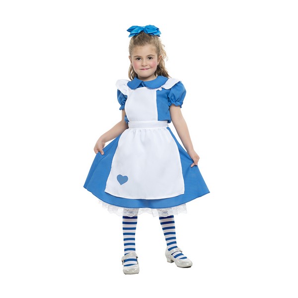 El disfraz de alicia para niña incluye vestido con enagua, delantal, y calcetas.Vuelve al País de las Maravillas y persigue al conejo blanco con este disfraz de Alicia para niña.