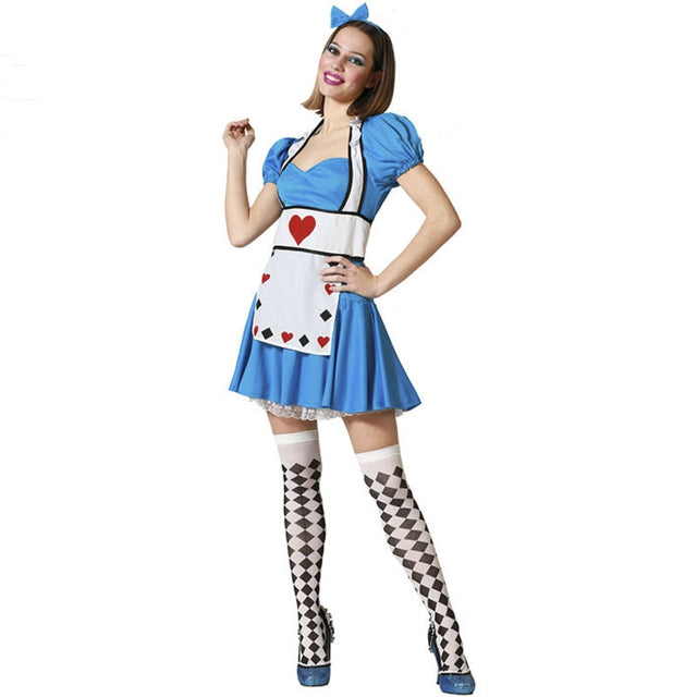 Disfraz talla adulto mujer ideal para Carnaval. Contenido del pack: una diadema con lazo, un vestido y un delantal. Original disfraz Alicia pensado para adultos. Este original disfraz de Carnaval de temática fantasía personajes Aicia en el país de las maravillas es un traje que te convertirá en el centro de cualquier fiesta de disfraces o evento gracias a la gran calidad de sus tejidos, sus numerosos detalles y sus ornamentaciones y filigranas. Este disfraz de fiesta se compone de 3 piezas: una diadema con lazo, un vestido y un delantal. No te conformes con ese disfraz casero que tendrás que hacer a mano y llévate un gran conjunto que le encantará a todo el mundo y los dejará sin palabras.