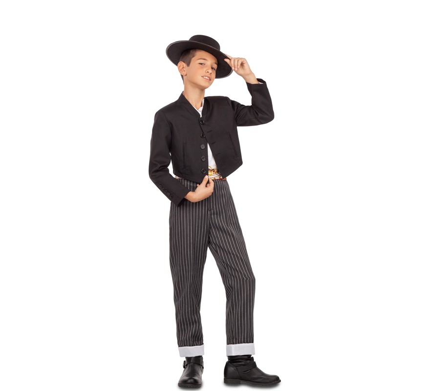 El disfraz infantil de Andaluz para niños incluye: chaqueta y pantalón. Con el disfraz de cordobés con chaqueta negra infantil tendrás el traje perfecto para disfrazar a tu hijo con el traje de campero típico de la provincia de Córdoba, y será el niño más elegante de la fiesta de disfraces.