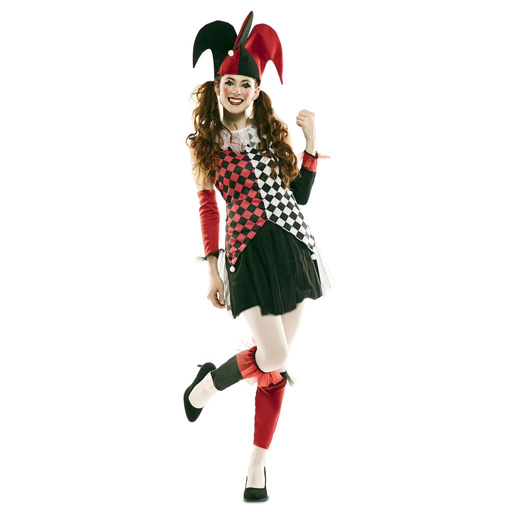 El disfraz de arlequín roja para mujer incluye Vestido, calentadores, muñequeras, gorro. Con el disfraz de arlequina roja para adulto tendrás el vestido perfecto para disfrazarte como estos personaje que se dedicaban a hacer reír a la gente con acrobacias y malabares durante la Edad Media, y triunfarás en tu fiesta de disfraces por tu gran originalidad.