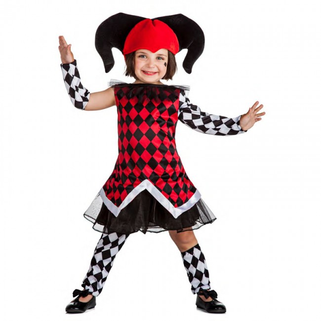 El disfraz de arlequina para niña incluye vestido con enaguas, manga, perneras y sombrero. Descubre el enorme surtido de disfraces infantiles online que ofrecemos. Disfrazar a vuestra hija con este espectacular disfraz de Arlequina o bufona infantil no está reñido con un precio bajo. Fomenta el juego y la imaginación de las niñas gracias a este vistoso disfraz de Arlequina femenino para niñas. Los disfraces y accesorios más originales del momento que servirán para equipar a hijas, sobrinas y nietas. Nuestra entrega urgente permite comprar hoy un disfraz y disfrazarse mañana mismo. Haz que tu hija ponga la nota de color y originalidad en su próxima fiesta de disfraces gracias a este disfraz Arlequina en talla infantil para niña. Tu hija deslumbrará al resto de amiguitas gracias a tu nuevo disfraz en todo tipo de festivales, desfiles escolares y fiestas de Carnaval.