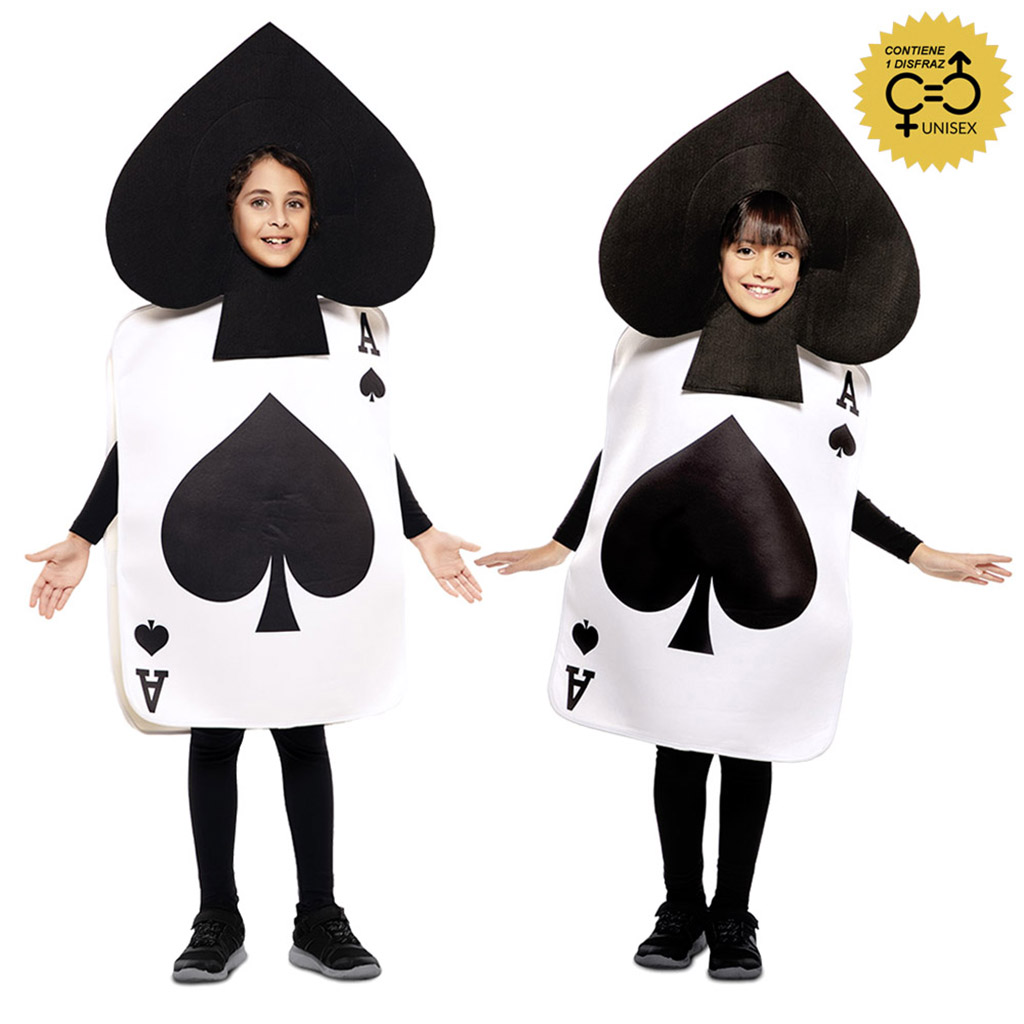 El disfraz de as de picas infantil incluye : Traje , gorro. Disfraz de Carta As de Picas infantil para celebrar el carnaval y para festivales escolares. Elige el disfraz de tu personaje favorito para vivir tus propias historias de cuento, rodeado de fantasía y magia.