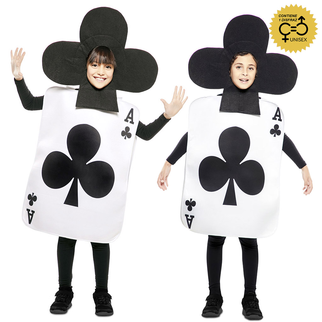 El disfraz de as de trébol infantil incluye : Traje , gorro. Disfraz de Carta As de Trébol infantil para celebrar el carnaval y para festivales escolares. Elige el disfraz de tu personaje favorito para vivir tus propias historias de cuento, rodeado de fantasía y magia.