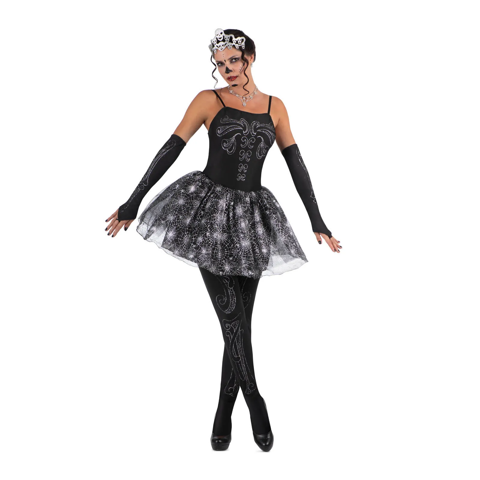 El disfraz de bailarina esqueleto para mujer incluye TIARA, VESTIDO, MITONES Y MALLAS.