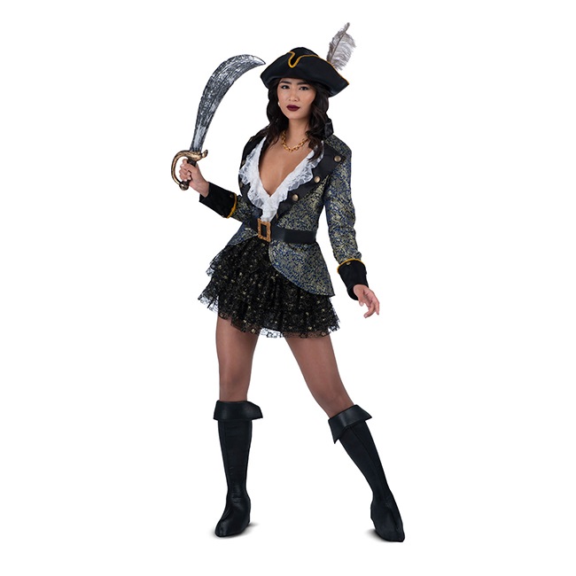 El disfraz de bucanera pirata para mujer incluye vestido, sombrero, cinturón, abrigo y cubrebotas. Con este fantástico Disfraz de Pirata Bucanera para Mujer conquistarás nuevas tierras en busca de los tesoros escondidos en ellas.