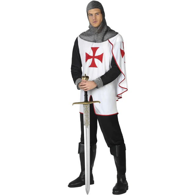 Disfraz talla adulto hombre ideal para Carnaval. Cotenido del pack: un accesorio para la cabeza con diseño de cota de malla, una camiseta con peto incluido y un pantalón largo. El disfraz es perfecto para representar a los soldados de las guerras de las cruzadas impulsadas por la iglesia en la Edad Media. Su colorido blanco y negro con la cruz roja lo hacen formal y llamativo, perfecto para vestirlo en grupo los días de carnaval, festejos o pasacalles, de manera formal o divertida, podrás darle en enfoque que quieras para multitud de ocasiones y lo mejor, a un precio único! No dejes escapar esta oportunidad, si te gustan los disfraces medievales, guerreros o caballeros, no hay muchas opciones mejor que esta!.