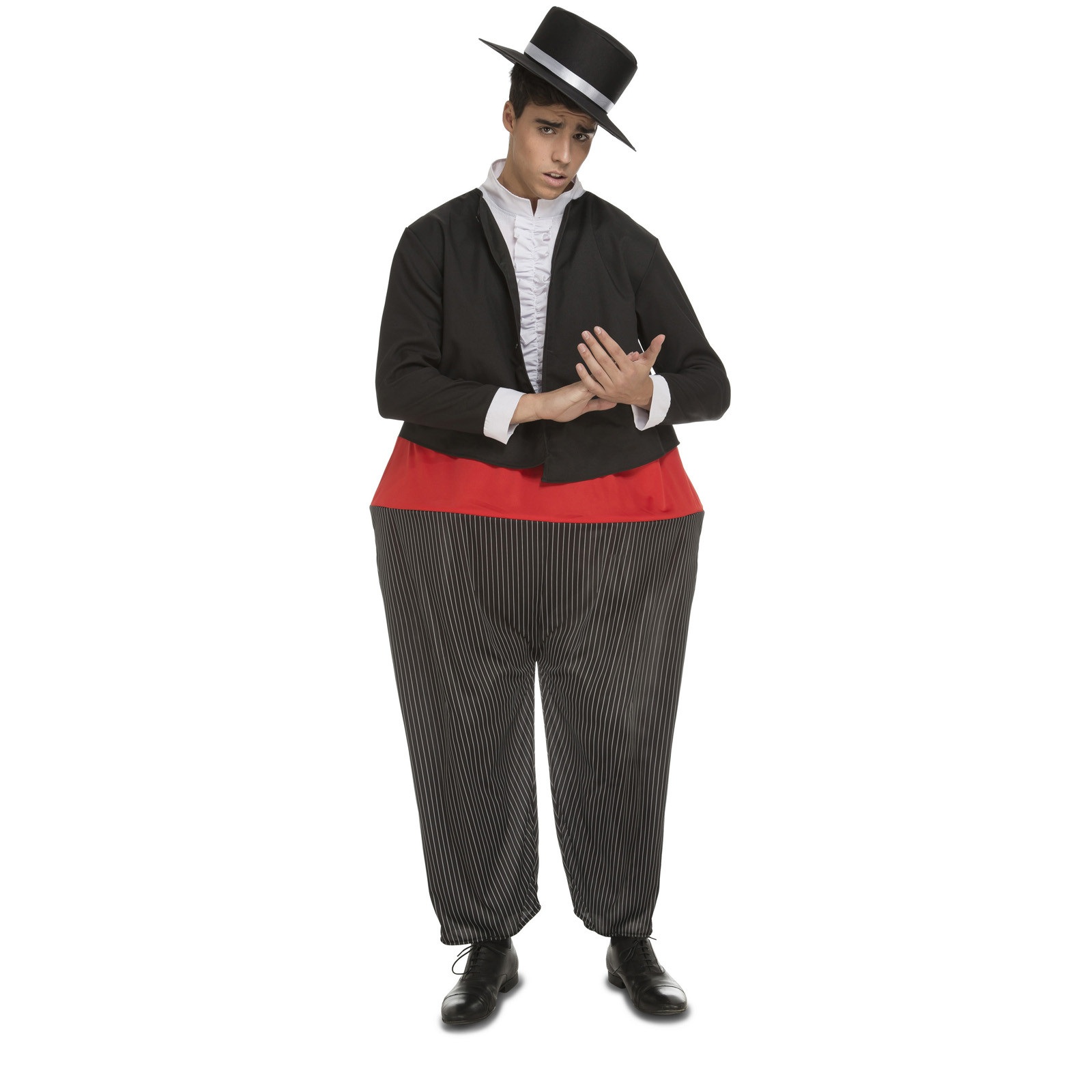 El disfraz de andaluz gordito para hombre incluye mono con aro y sombrero. Consigue ser el bailaor y palmero más gracioso en la Feria de Abril, con este disfraz de Cordobés Grassoni para adulto. El andaluz más salado de las Fiestas Temáticas, Despedidas de Soltero y Carnaval.