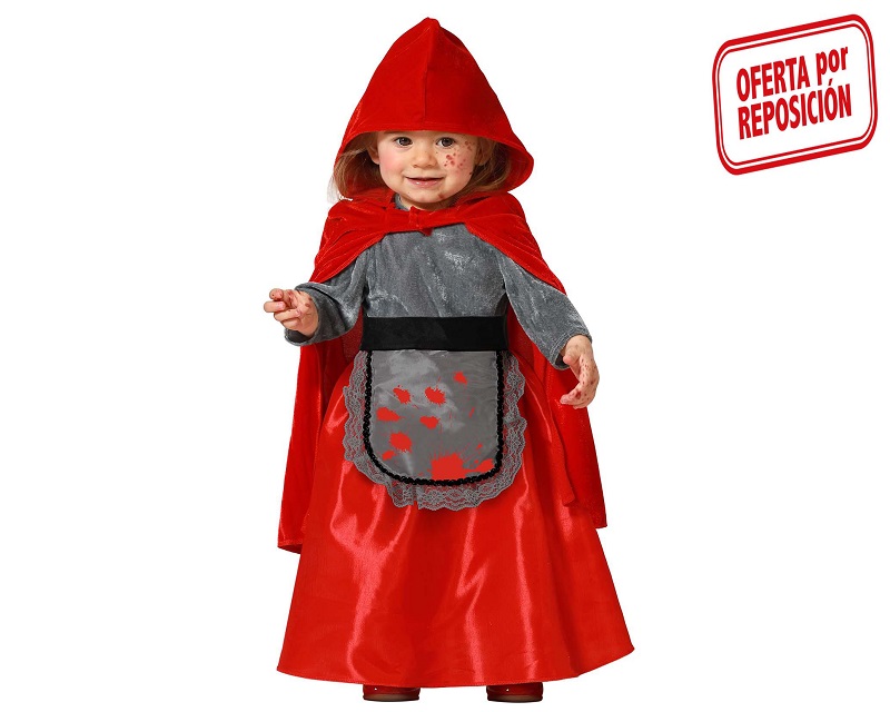 El disfraz de caperucita roja ensangrentada para bebé niña incluye vestido manga larga, delantal y capa con capucha.