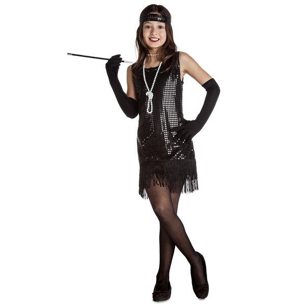 El disfraz de charlestón negro para niña incluye el vestido y la cinta para la cabeza.¿Estás buscando un disfraz diferente, original y elegante para tu pequeña? Viaja con ella a los alucinantes años veinte y haz que su imaginación vuele con este fantástico disfraz de charlestón niña. ¡Dejará a todos boquiabiertos cuando le vean aparecer a la fiesta de disfraces! El disfraz de charlestón niña es perfecto para carnaval o cualquier tipo de fiesta de disfraces. Ahora sólo le falta preparar sus pasos de baile preferidos y dejar a todos alucinados. ¡Lo va a pasar en grande!