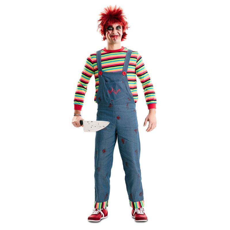 El disfraz de Chucky para hombre inluye Jersey, pantalón de tirantes.