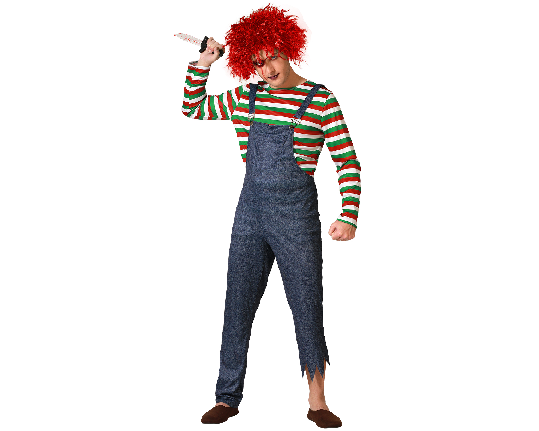 El disfraz de Chucky para hombre incluye pantalón y camisa.