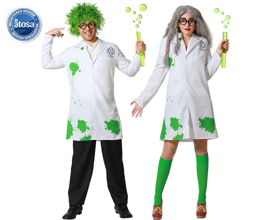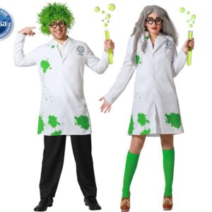 El disfraz de científico-a para adulto incluye la bata. Con este disfraz de científico loco para adulto podrás preparar peligrosos esperimentos y pócimas.
