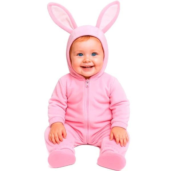 El disfraz de conejito de Pascua para bebé incluye mono con capucha. Como un dulce y delicado conejito pasará tu bebé su próximo Carnaval si te decides por comprar este disfraz. Con sus orejotas y sus grandes dientes roedores, este disfraz de conejo está confeccionado en una única pieza, en tonos rosa.
