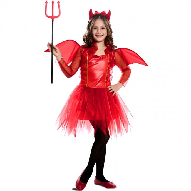 El disfraz Halloween de Diablesa roja con alas para niñas incluye: vestido, diadema y alas. Este traje terrorífico de niña imitando a una Demonia con tutú.