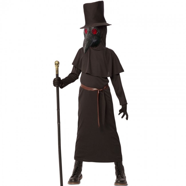 El disfraz Halloween de Doctor Peste para niños incluye: Túnica, capelina con capucha, sombrero, cinturón y máscara. Este traje aterrador de niño imitando a un médico de La Peste Negra está disponible en 2 tallas distintas.