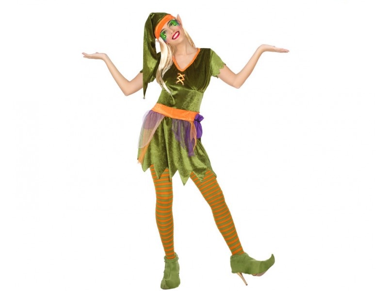El disfraz de duende para mujer incluye vestido, sombrero y babuchas. Conviértete en una sexy y alegre duendecilla o elfa con este disfraz.