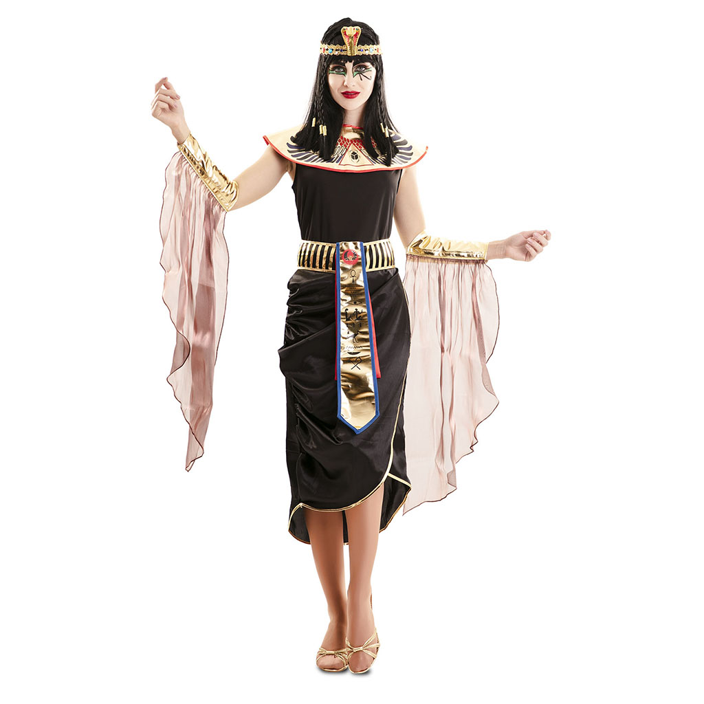 El disfraz de egipcia para mujer incluye vestido, cuello, cinturón y muñequeras. Un precioso y original modelo de Faraona Egipcia para imitar a Cleopatra.