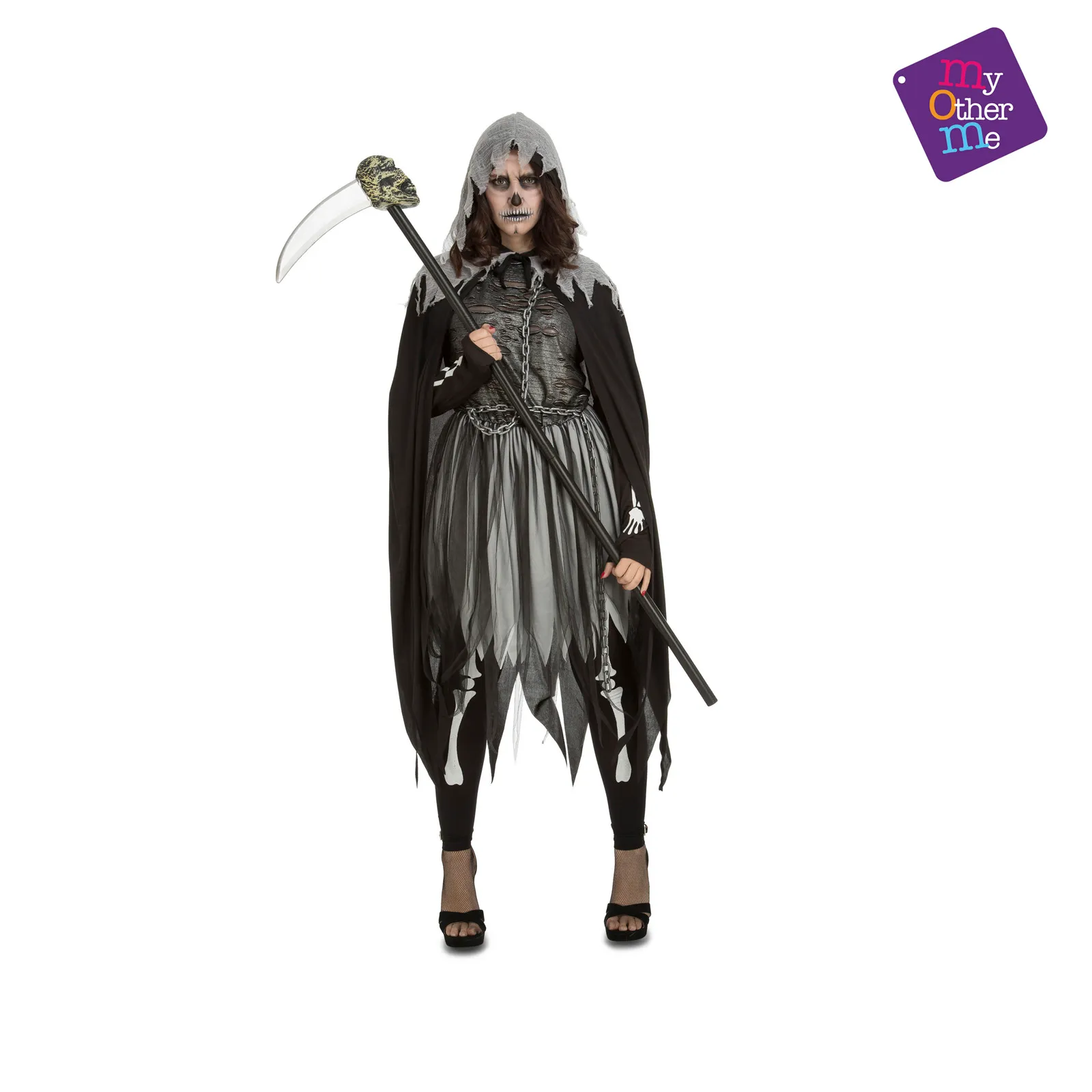 El disfraz de ejecutora para mujer incluye CAPA CON CAPUCHA, VESTIDO, MANGUITOS, POLAINAS Y CINTURÓN.