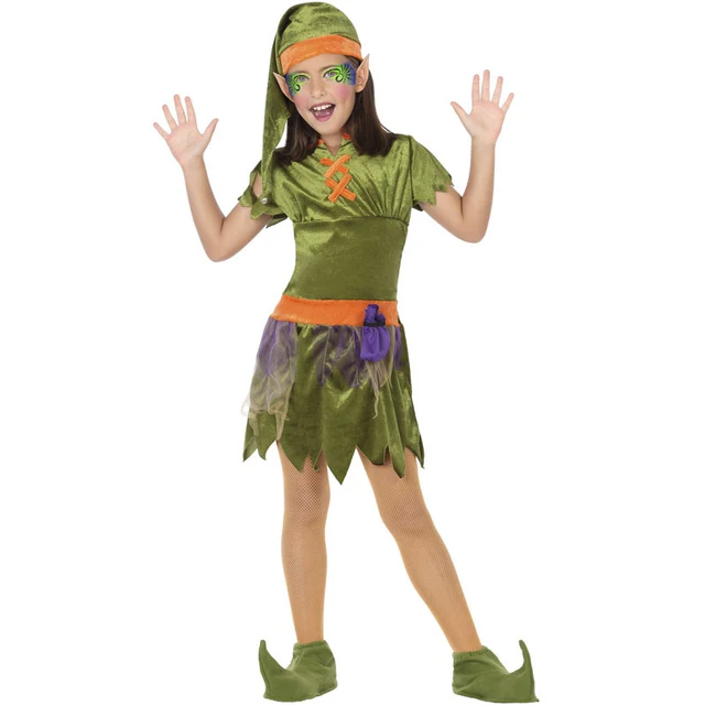 El disfraz original de Elfa del bosque para niñas incluye: vestido, sombrero, cinturón y cubrezapatos. Transforma a tu hija en una divertida Elfa del bosque de forma rápida usando este nuevo disfraz original para niñas. No dejes pasar la oportunidad de disfrazarla de Duende verde con este traje de Carnaval femenino infantil.