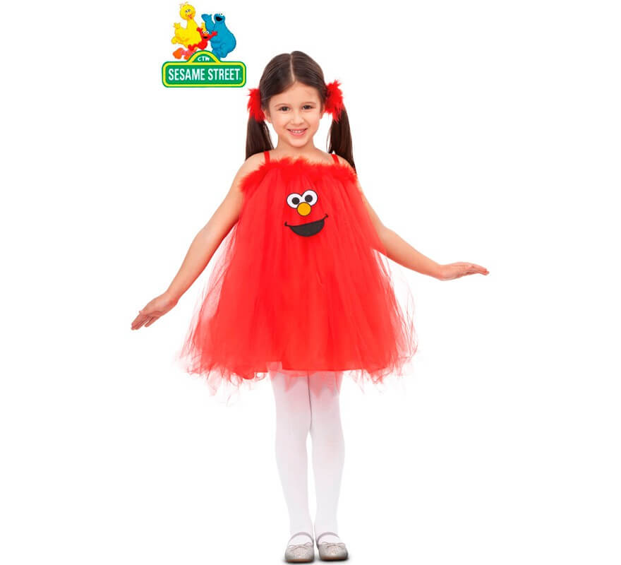 Disfraz de Elmo rojo con Tutú para niña y bebé. Incluye vestido tutú y coleteros. No incluye medias ni calzado. Este producto es de licencia oficial de Barrio Sésamo. La mejor de las opciones para su fiesta Sesame Street en Carnaval, Halloween o un festival del cole. Vais a alucinar cuando veáis la foto del disfraz tutú Elmo de niña, el monstruo rojo de Barrio Sésamo.