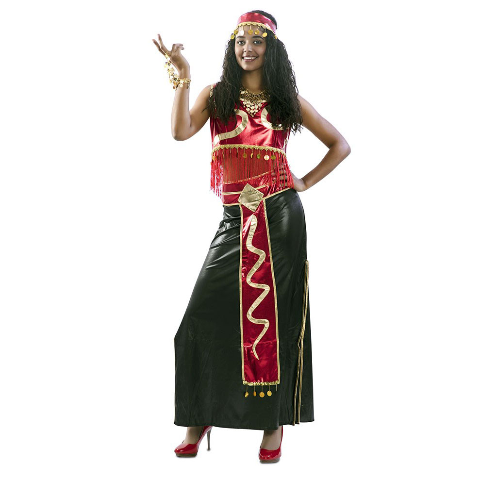 El disfraz de encantadora de serpientes para mujer incluye Blusa, falda, vincha. Disfraz de Encantadora de Serpientes o Bailarina Árabe para mujer.