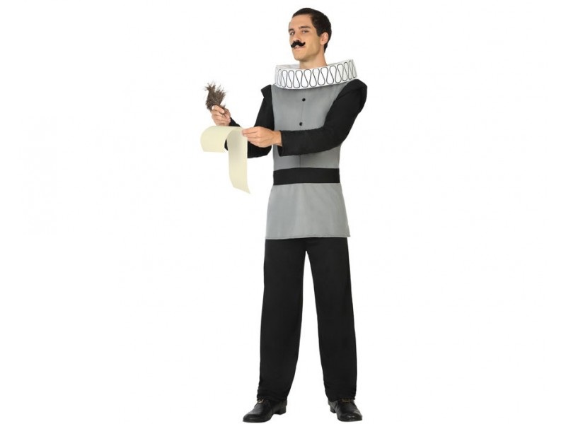 El disfraz de escritor Cervantes para hombre incluye casaca, pantalón y cuello. Es un disfraz que es perfecto para caballero de época español , príncipe de cuento o para Don juan tenorio.