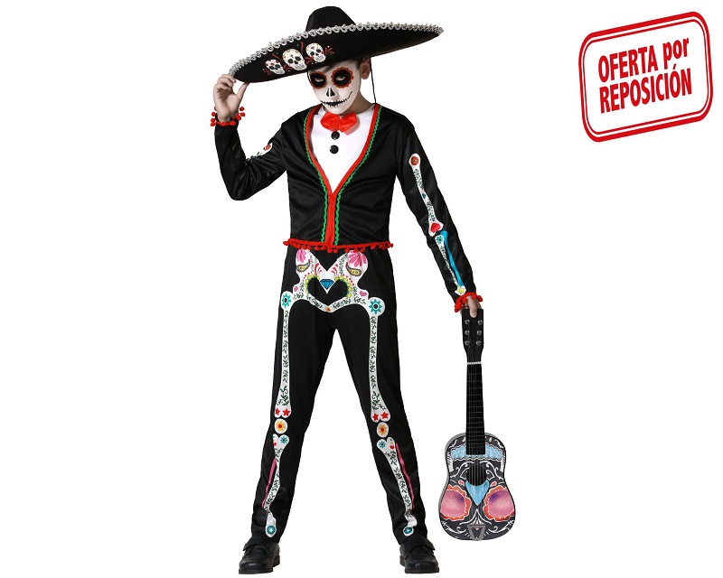 El disfraz de esqueleto mejicano para niño incluye camiseta manga larga con diseño de chaqueta, pantalón largo. No incluye guitarra ni sombrero.