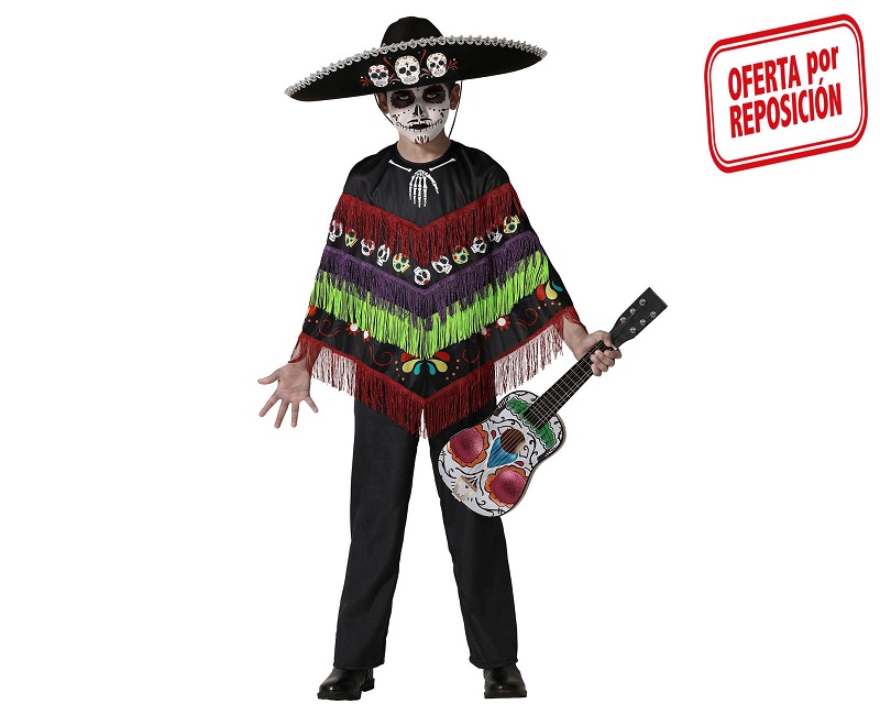 El disfraz de esqueleto mejicano para niño incluye manto mexicano halloween.