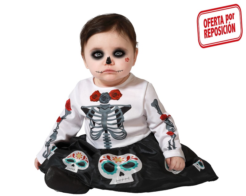 El disfraz de esqueleto mejicana para bebé niña incluye vestido de falda corta. No incluye medias.