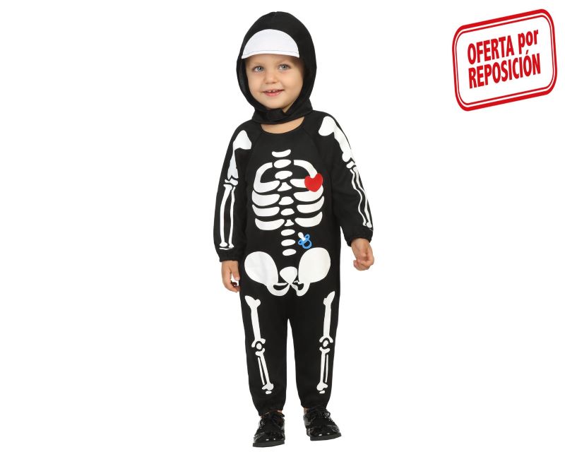 El disfraz de esqueleto para bebé incluye capucha y mono.