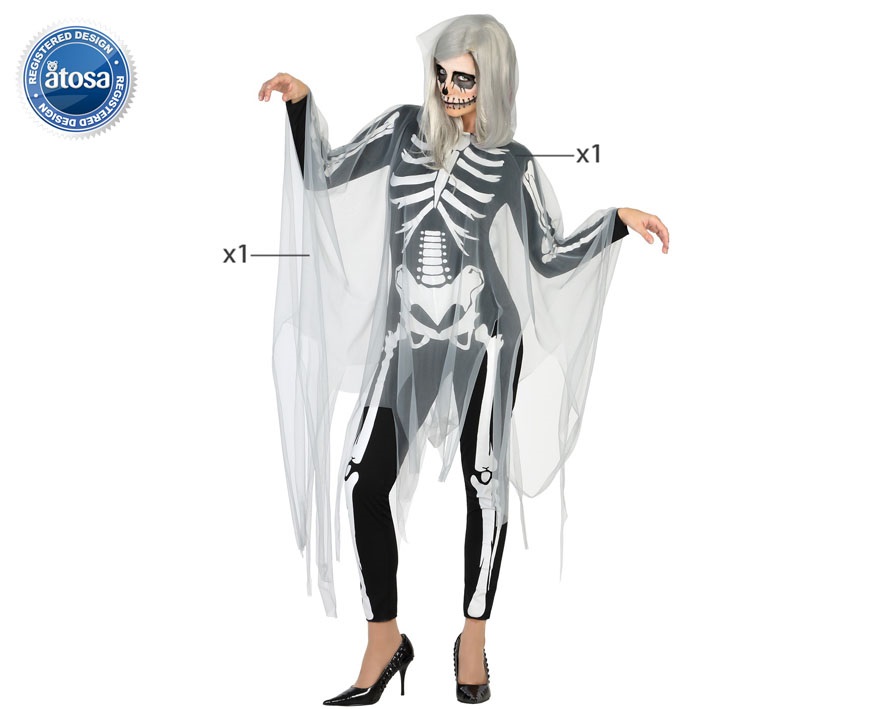 El disfraz de esqueleto para mujer incluye mono y capa translúcida.