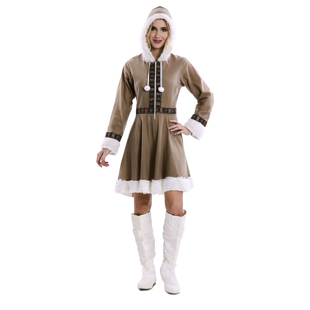 El disfraz de esquimal para mujer incluye vestido con capucha.