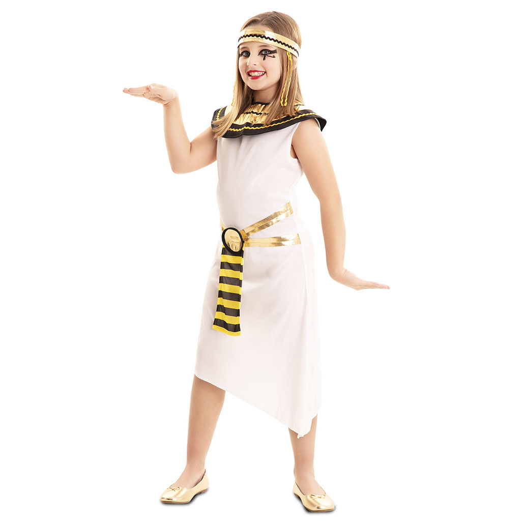El disfraz de faraona egipcia para niña incluye : Túnica, collar, vincha. Un precioso disfraz para convertirse en la reina del nilo.