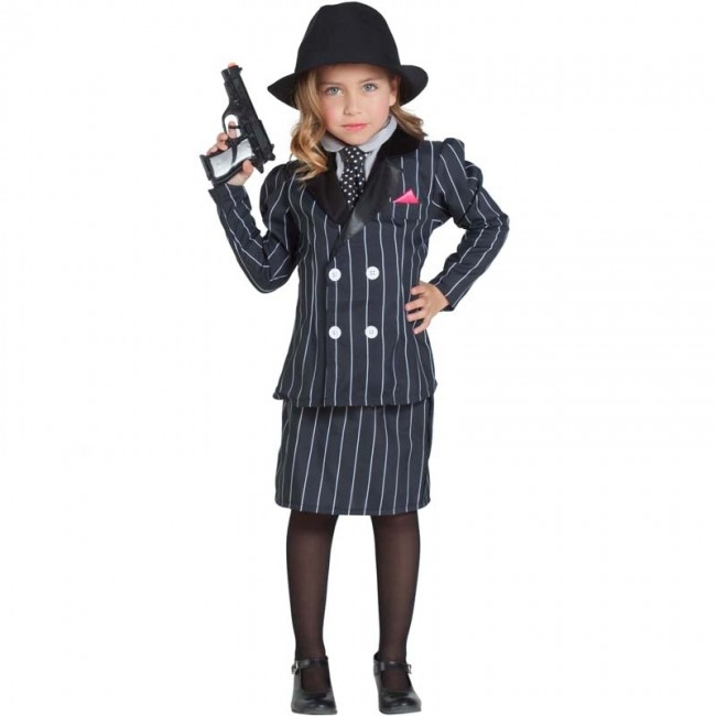 El disfraz de gánster para niña incluye chaqueta, cuello, falda y corbata. Con este disfraz de Ganster para niña, tu peque pondrá más orden en la fiesta que Al Capone en su época.