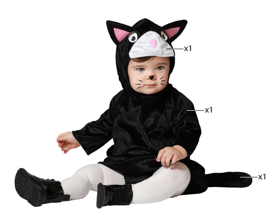 El disfraz de gatito para bebé incluye túnica, accesorio para la cabeza y cola. No incluye medias. Tu peque será el gatito más adorable de toda la fiesta con este divertido disfraz.