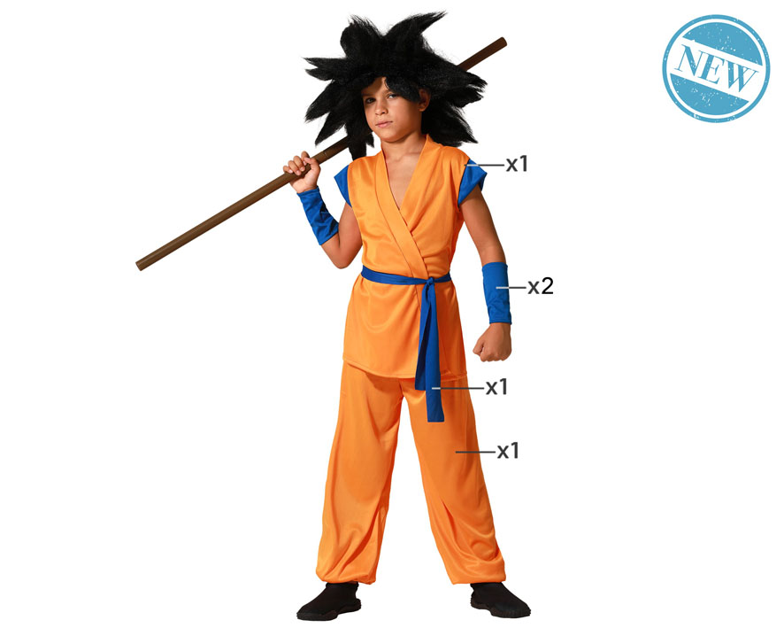 El disfraz de Goku Dragon Ball para niño incluye bata, pantalón, cinturón y muñequeras. No incluye: peluca y bastón. Disfruta al máximo con nuestros disfraces de tus personajes televisivos y de cine favoritos.