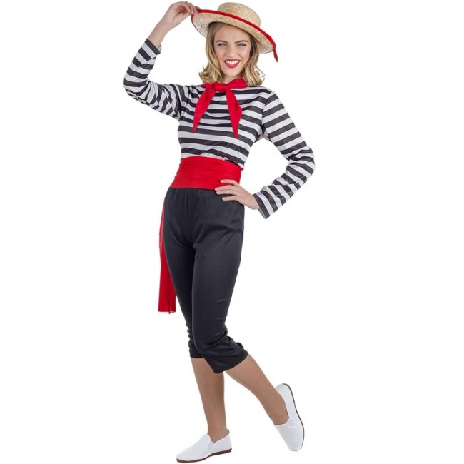 El disfraz de gondolera veneciana para mujer incluye Sombrero, Camisa, Pañuelo, Fajín, Pantalón. Con el disfraz de gondolera veneciana con sombrero para adulta tendrás el traje perfecto para disfrazarte como estas barqueras típicas de Venecia, y triunfarás en tu fiesta de disfraces por tu gran originalidad.