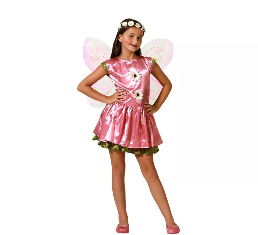 Disfraz para niña talla infantil. Contenido: vestido y set de alas. Con el disfraz de hada rosa infantil tendrás el vestido perfecto para disfrazar a tu hija como estas criaturas mágicas de la mitología griega y romana que tenían alas de mariposa, y tu hija será la niña más guapa de la fiesta de disfraces.