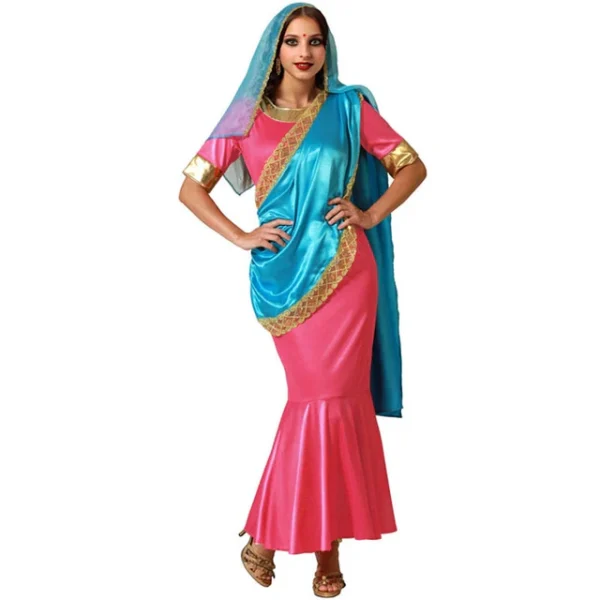 Disfraz para mujer talla adulto. Contenido: vestido, velo. Disfraz de Hindú para mujer para disfraces carnaval y fiesta disfraces. Los disfraces tradicionales son ideales para las fiestas temáticas del país. Disfruta en familia o con tus amigos de las fiestas tradicionales.