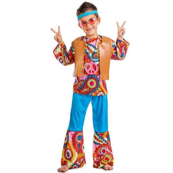 El disfraz de hippie chaleco para niño incluye camisa con chaleco, pantalones y cinta para la cabeza. Vuelve a los 60 con este disfraz de niño hippie infantil.