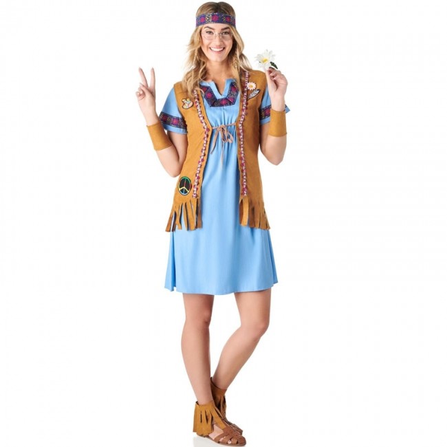 El disfraz de hippie jeans para mujer incluye Cinta Cabeza, Vestido, Chaleco, Brazaletes, Polainas. Disfraz de Hippie Multicolor para mujer para carnaval y tu fiesta hippie. Descubre los disfraces de hippie más coloridos y divertidos.