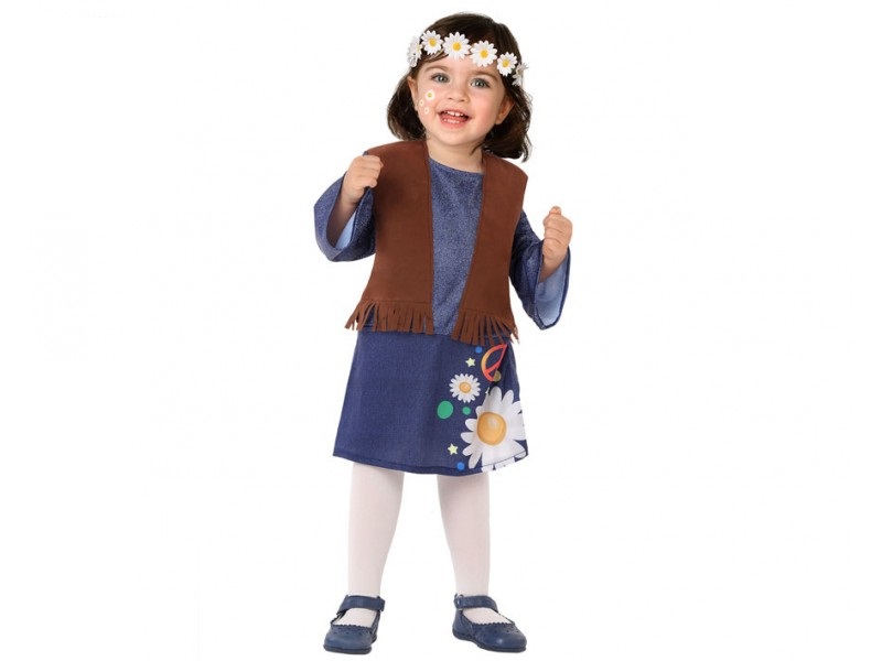 El disfraz de hippie para niña incluye el vestido. Con el Disfraz de Hippie de la Paz para Bebe Niña, será la más pacífica de la fiesta de Carnaval o de disfraces escolar. Derrochará alegría, paz y amor.