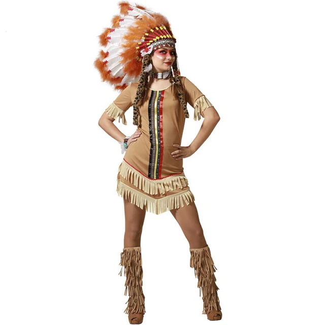 El disfraz de india para mujer incluye vestido de manga corta con flecos y líneas en el pecho. Disfraz de India Cheyenne para mujer, perfecto para disfrazarse en grupo en Carnaval o fiestas temáticas del lejano Oeste. Transfórmate en una guerrera India y acude junto a tu tribu a la fiesta de disfraces, en donde encontrarás a los rostros pálidos. Seguro que más de uno te quiere sacar a bailar.