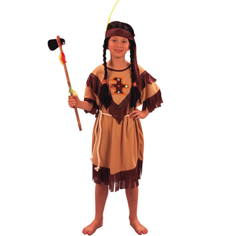 El disfraz de india para niña incluye vestido, cinturón y cinta cabeza. Económico disfraz para formar parte de las tribus indias.