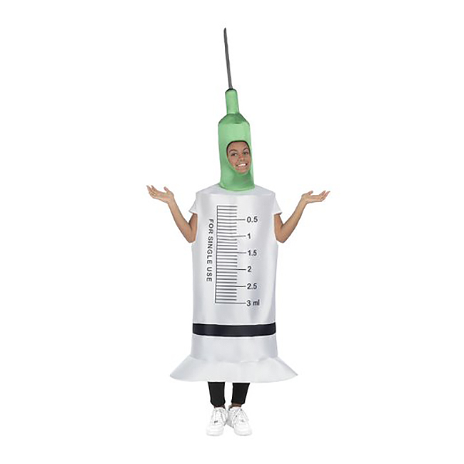 El disfraz de jerenguilla para adulto incluye traje cilíndrico y gorro con aguja. Disfraz de Jeringuilla para adulto para carnaval y fiestas temáticas. Compra disfraces de enfermera y médico a los mejores precios.