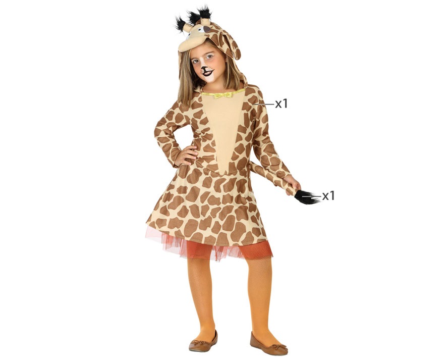 El disfraz de jirafa para niña incluye vestido de jirafa y rabito. Disfraz de Jirafa Manchas para niña para disfraces carnaval y fiestas de disfraces. Disfraces de animales cómodos, originales, divertidos, elige el que más te guste para la fiesta.