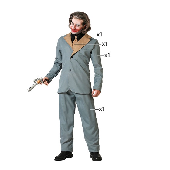 El disfraz de jóker gris para hombre incluye pantalón, chaqueta, corbata y cuello camisa. Disfraz de Jóker Gris para hombre para carnaval y fiestas infantiles.