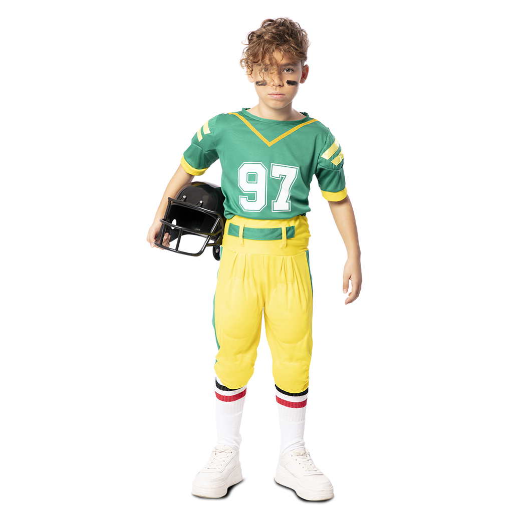 El disfraz de jugador de rugby para niño incluye Camiseta y pantalón. Este traje es ideal para el carnaval y otras fiestas temáticas. Te convertirás en una estrella del Super Bowl.