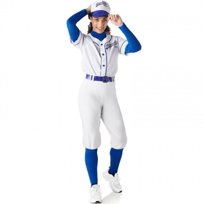 El disfraz de jugadora de beisbol azul para mujer incluye Camisa, Chaqueta, Pantalones, Gorra, Cinturón, Perneras. Este disfraz para mujer de jugadora de un equipo de baseball es perfecto para todos aquellos que adoran disfrazarse y quieren convertirse en el centro de atención en cualquier evento.